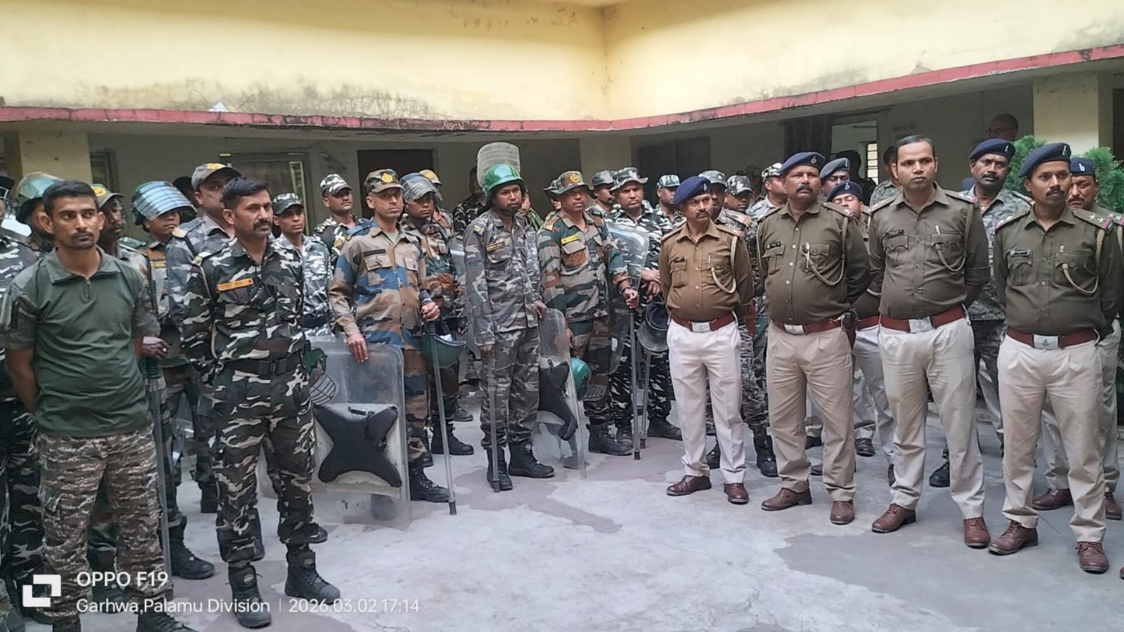 गढ़वा में होली से पहले पुलिस का फ्लैग मार्च, शांति और सौहार्द का संदेश