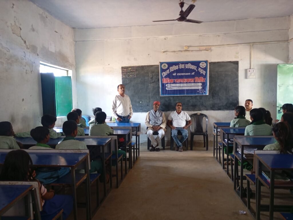 News UDI | गढ़वा : बाल विवाह जैसी सामाजिक बुराई की जड़ें काटने और बच्चों को उनके कानूनी अधिकारों के प्रति सजग बनाने के उद्देश्य से जिला विधिक सेवा प्राधिकार (DLSA), गढ़वा इन दिनों एक्शन मोड में है। नालसा (नई दिल्ली) और झालसा (रांची) के दिशा-निर्देशों पर, प्रधान जिला एवं सत्र न्यायाधीश सह अध्यक्ष मनोज प्रसाद एवं सचिव निभा रंजना लकड़ा के नेतृत्व में जिले के विभिन्न क्षेत्रों में जागरूकता का अलख जगाया जा रहा है। इसी कड़ी में शनिवार को राजकीय उत्क्रमित मध्य विद्यालय, करके और मुख्यमंत्री उत्कृष्ट कन्या उच्च विद्यालय, गढ़वा में विशेष विधिक साक्षरता शिविरों का आयोजन किया गया।