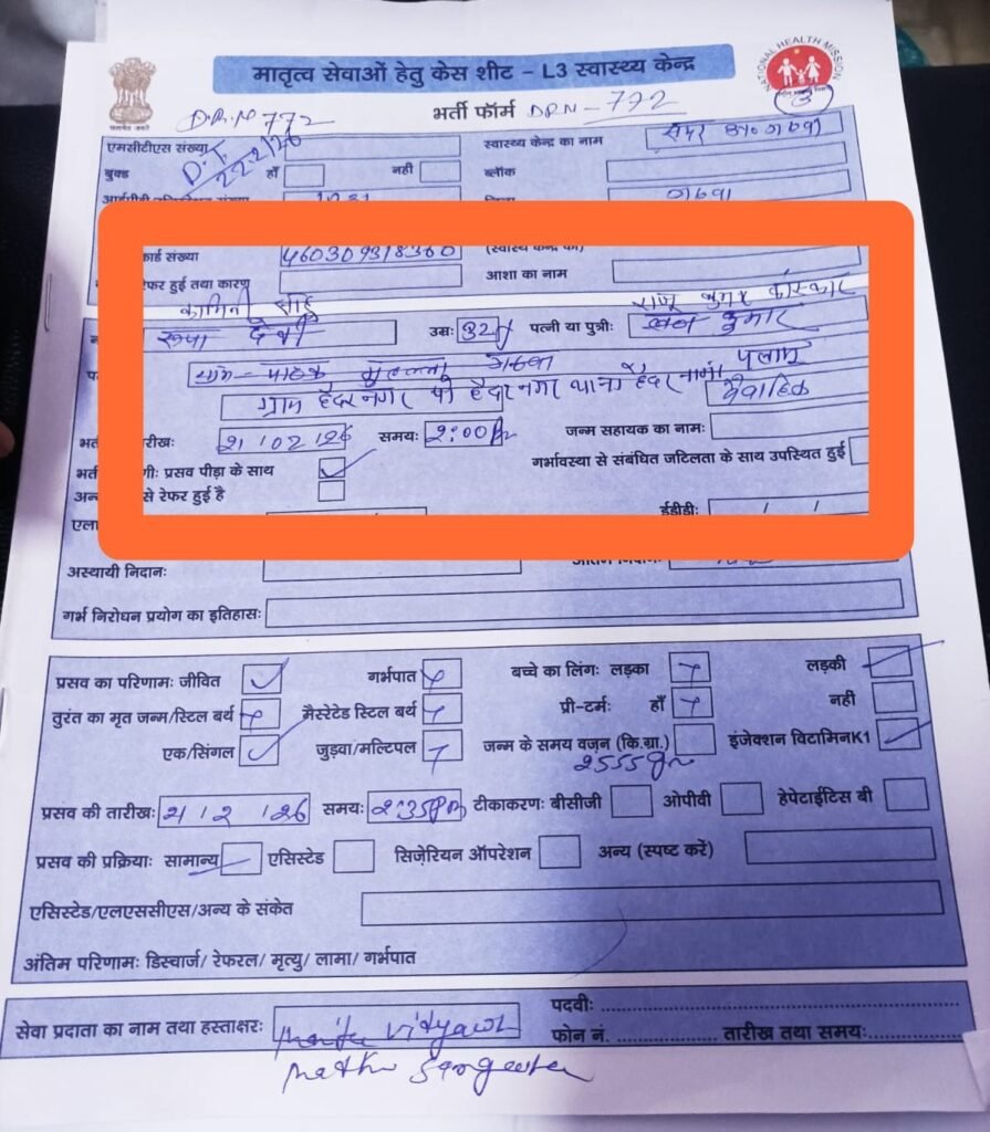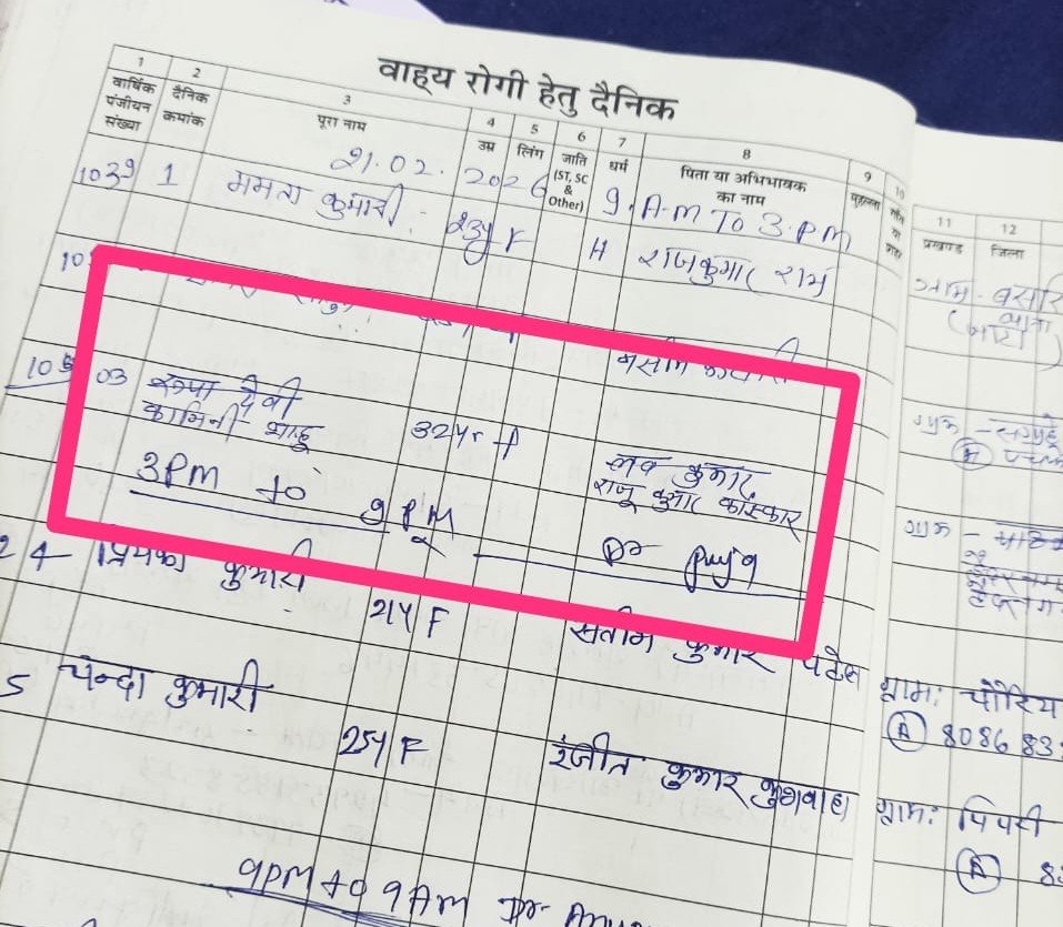 आरोप है कि इसके बाद दूसरी शिफ्ट में आई एएनएम तारामणि कुजूर ने सभी सरकारी रजिस्टरों में अवैध रूप से काट-छाँट की और प्रसूता का नाम, उम्र , पति का नाम एवं पता बदलकर ‘कामिनी साहु’ और पति का नाम ‘राजू कुमार कांस्यकार’ कर दिया। इसी फर्जीवाड़े के आधार पर बच्ची को लेकर दंपती फरार हो गए।